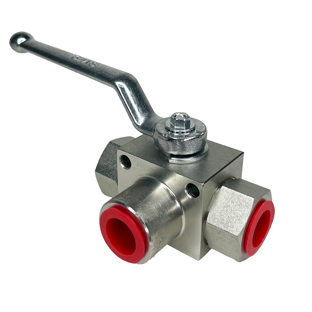 3-vägs kulventil BSP 1/2 är en högtryckshydraulisk ventil med tre portar och ett L-format flödeskanal. Den använder BSP 1/2 tums gängor och klarar ett tryck på 315 bar. Denna ventil är designad för att hantera flödet av vätskor och gaser i industri- och hydraulikapplikationer.