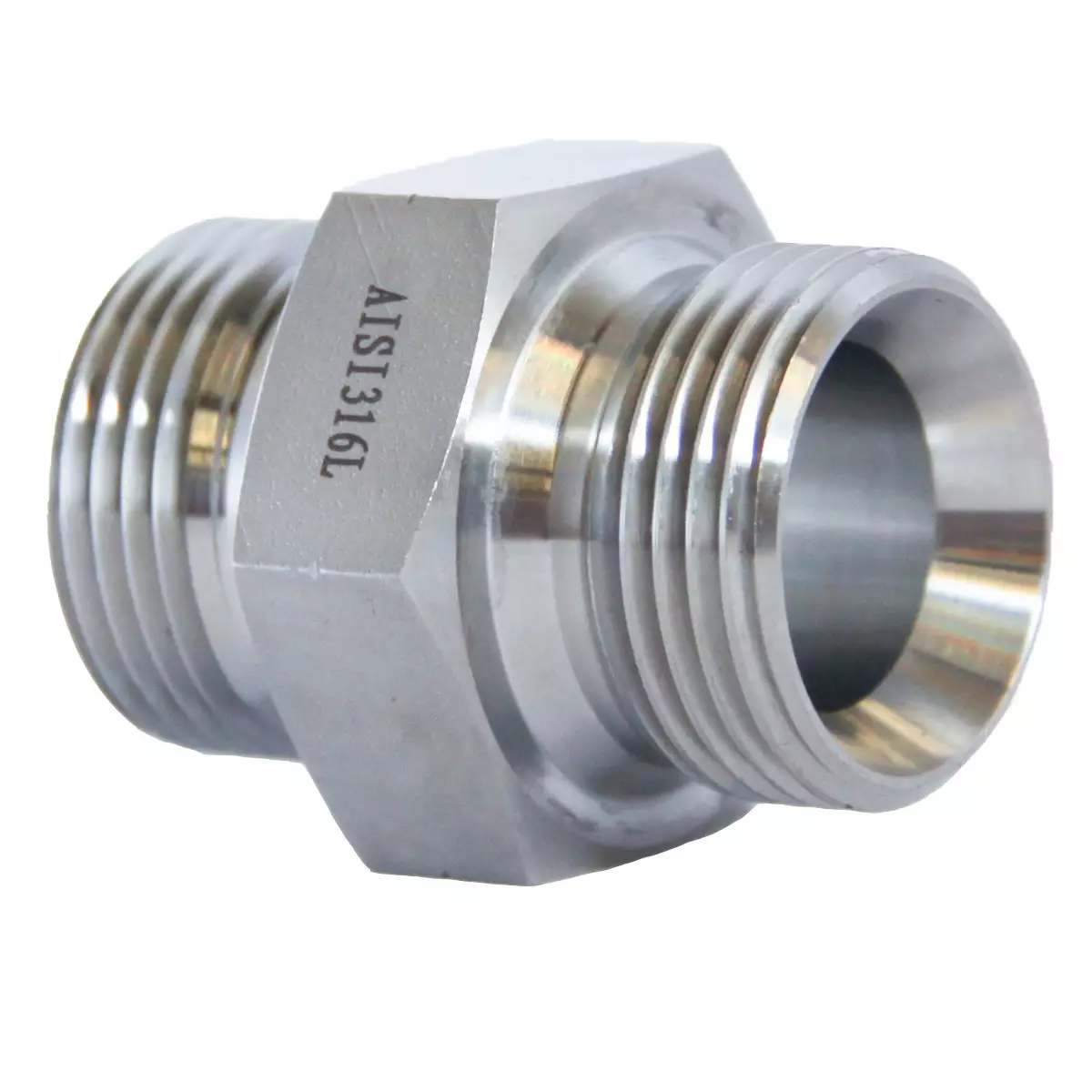 Adapter med BSP 60° utvändig gänga i båda ändar är konstruerad för att säkerställa en läckagefri och mekaniskt hållbar anslutning i hydraulsystem. Den lämpar sig utmärkt för att koppla samman trycksatta ledningar, ventiler, cylindrar och slanganslutningar.