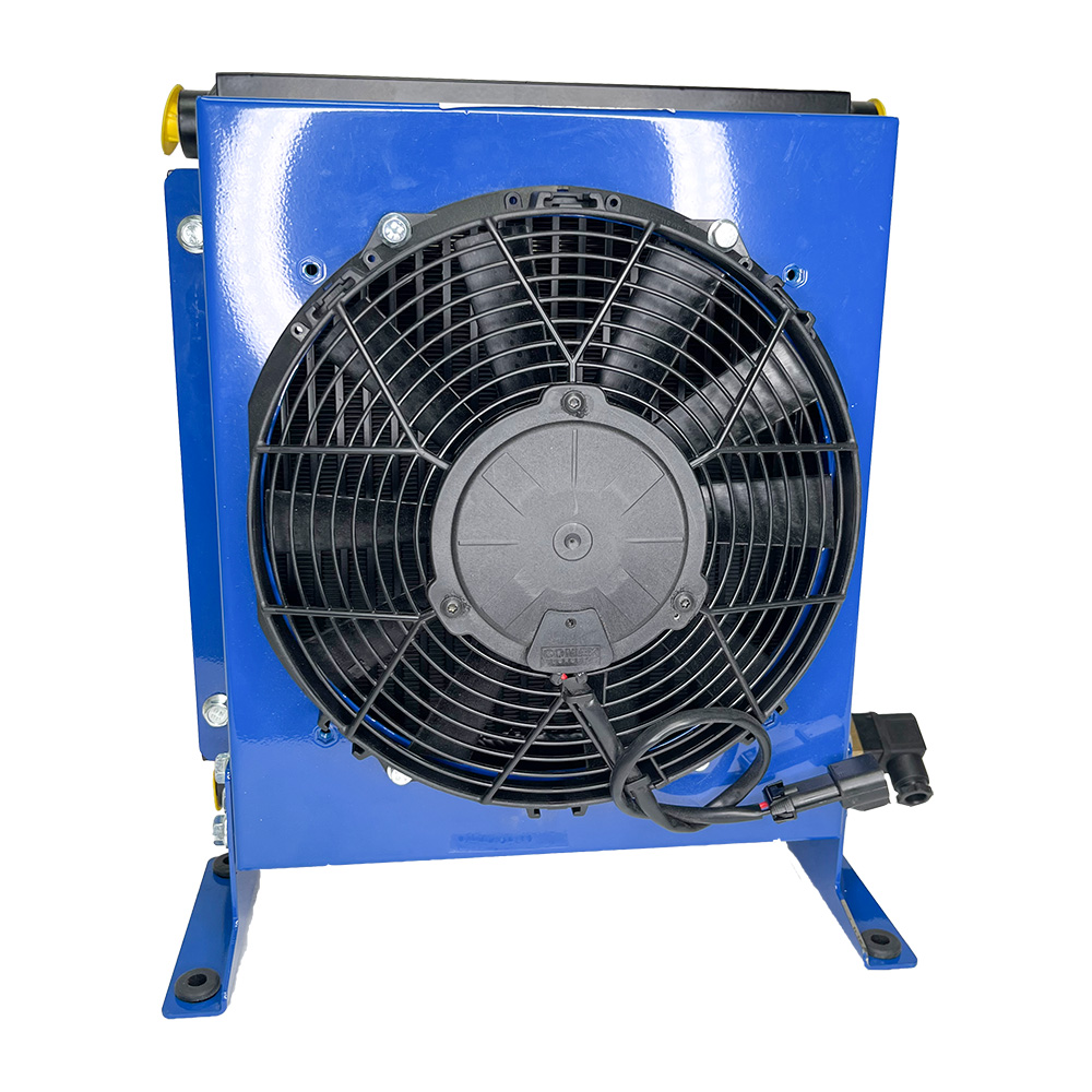 Termostatstyrd oljekylare, där fläkten börjar fungera när oljetemperaturen överstiger 60 grader Celsius. Oljekylaren skyddar hydrauliksystemet från överskottsvärme. Oljekylaren installeras på hydraulikens retursida.
