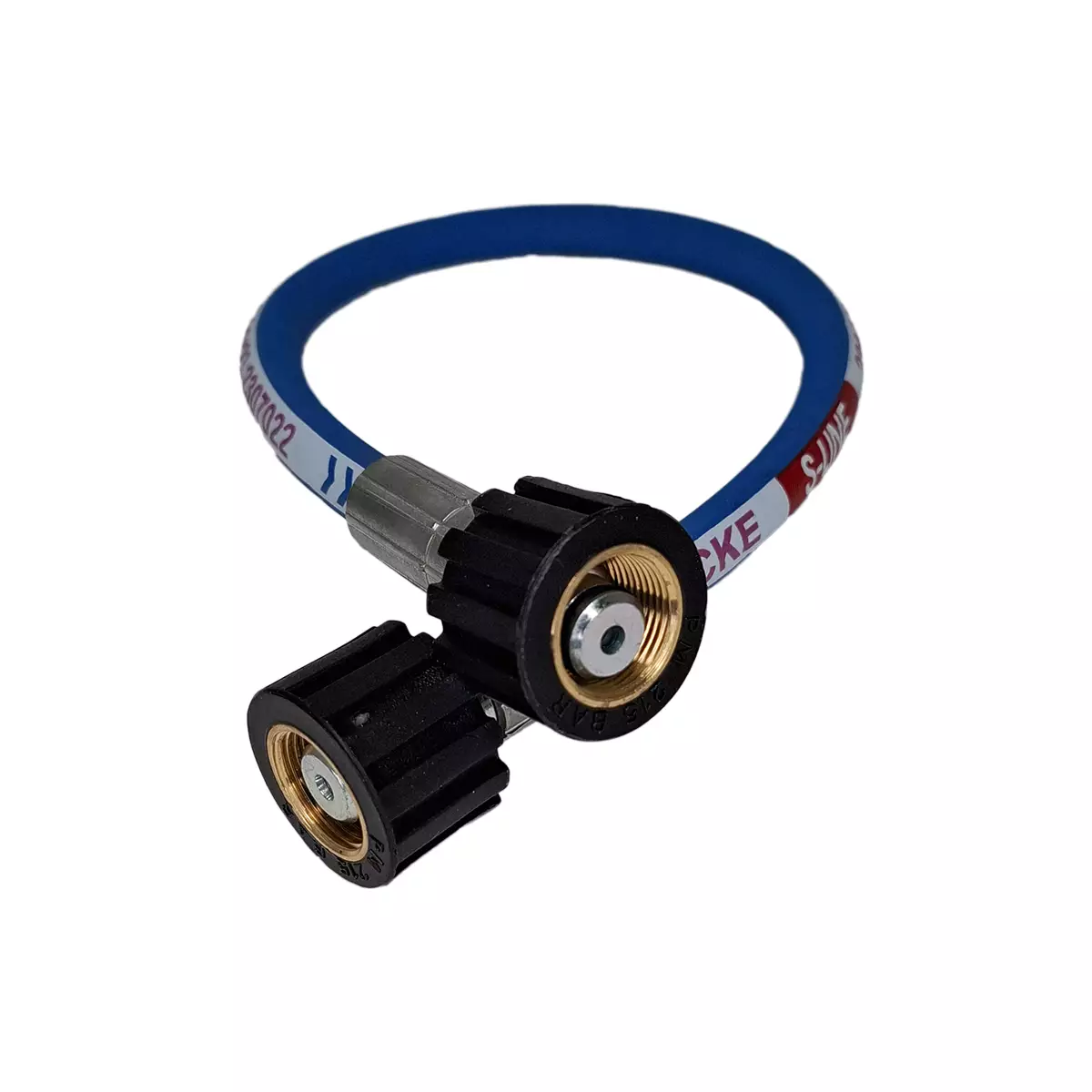 Färdigmonterad 3/8” högtryckstvättslang med kopplingar som har en högre mutter än standard och en lägre tätningsyta. Välj önskad slanglängd i menyn.