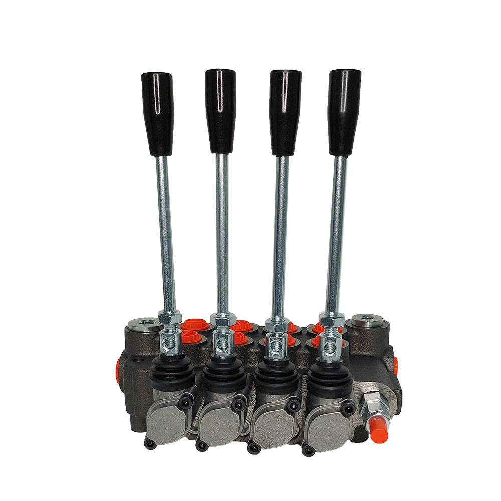 Manualventilen används för att styra oljeflödet från pumpen till önskade ställdon, till exempel cylindrar eller hydraulmotorer. Denna ventil är en 4-spol, 2-funktions ventil med stängd mittposition. Den passar bra för styrning av en 2-funktions cylinder.